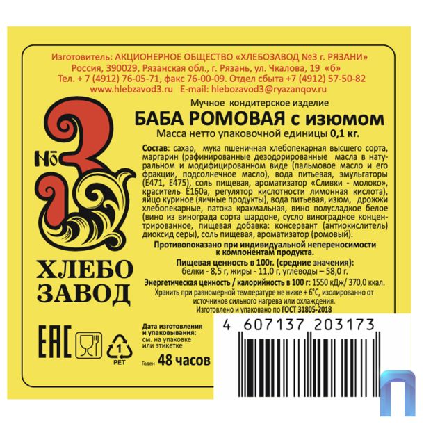 Этикетка для кольца с творогом